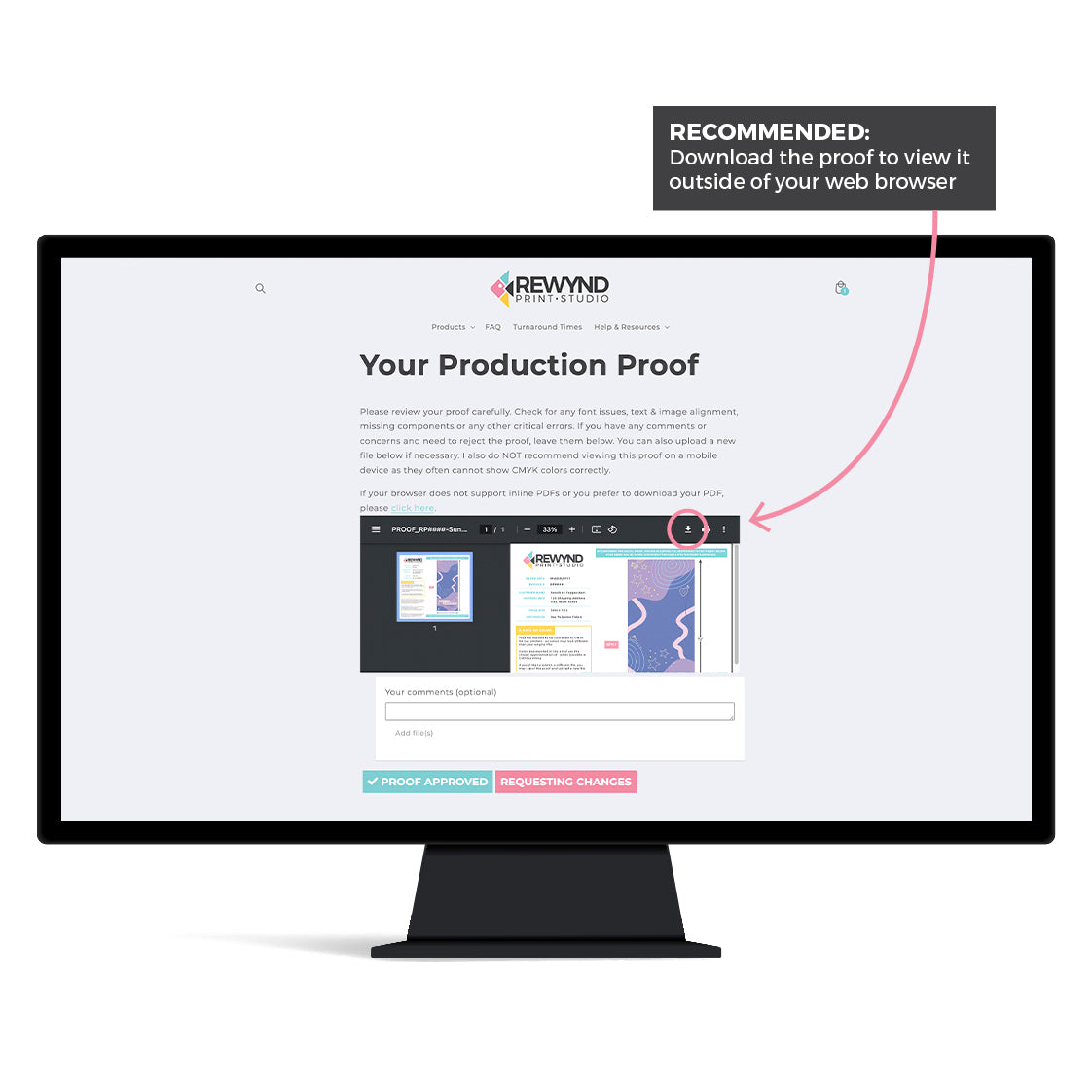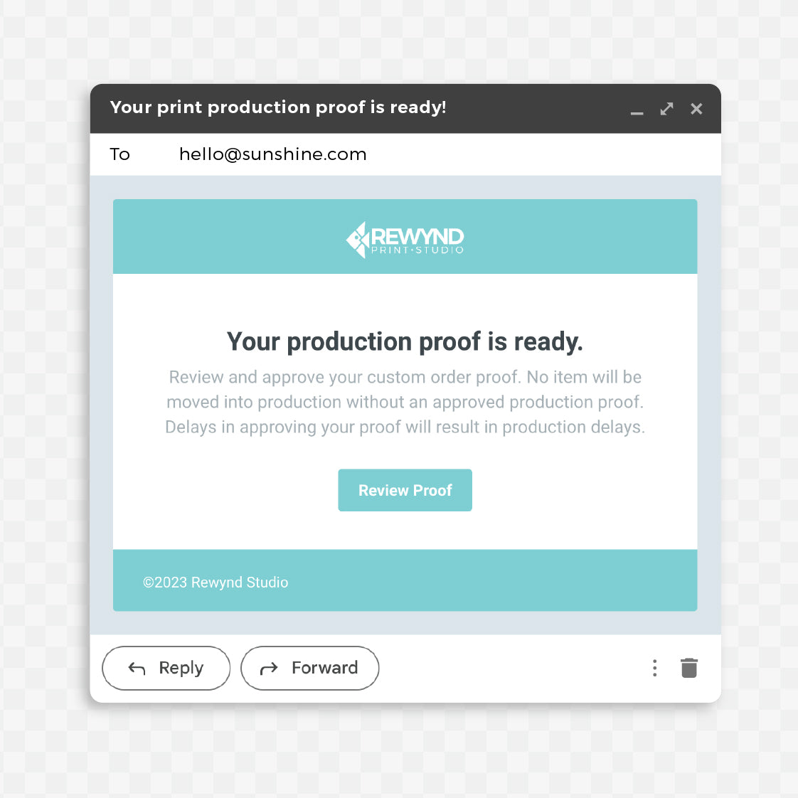 A production proof is essentially a sneak peek at your final product. It's a digital preview presented in PDF format.