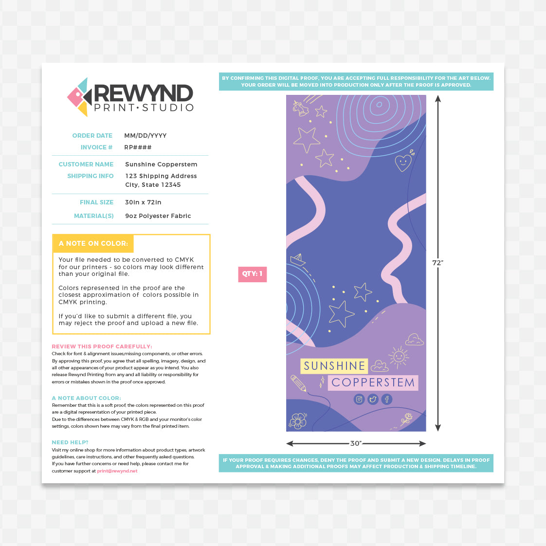Any specific placements for features like pole pockets or grommets will be marked on the proof.