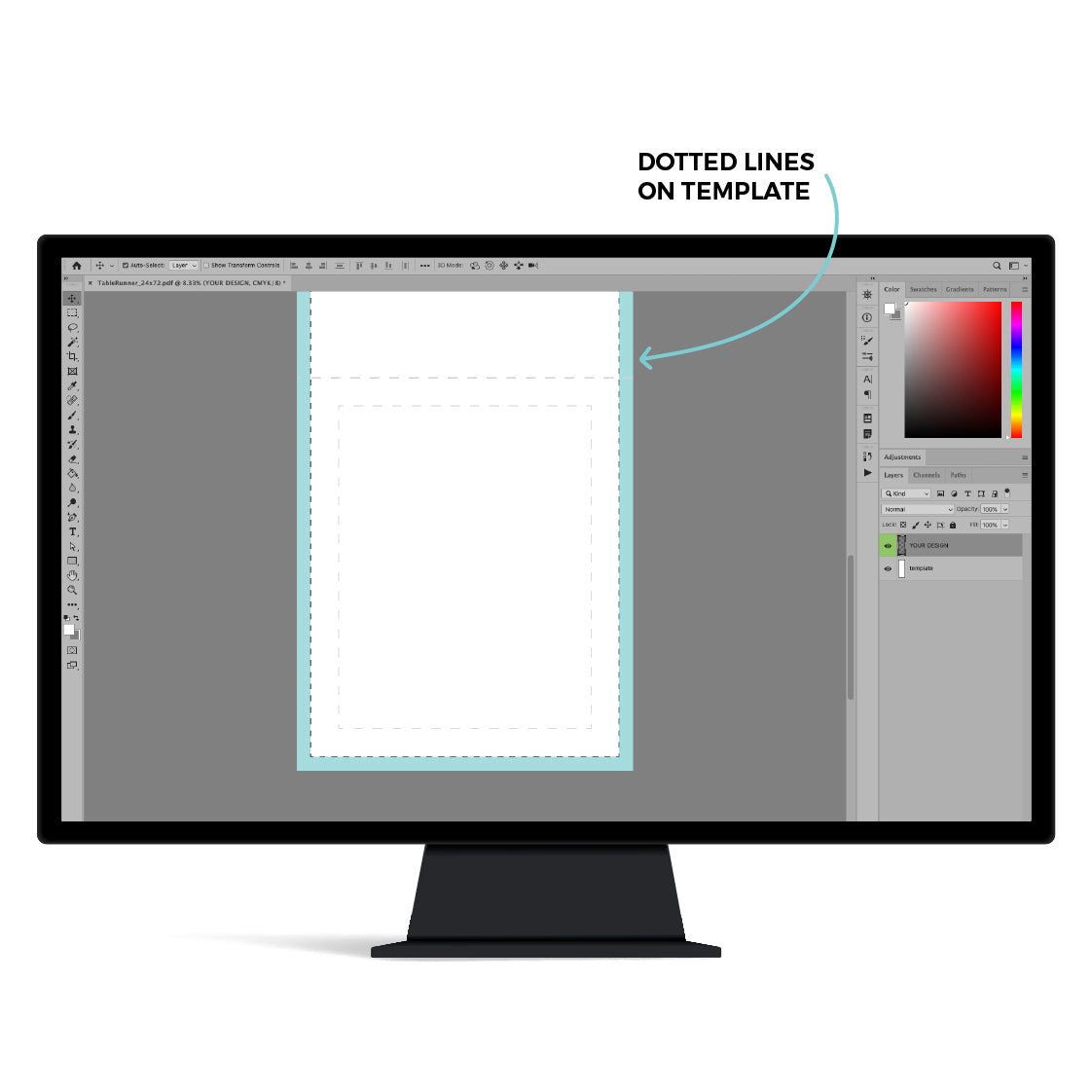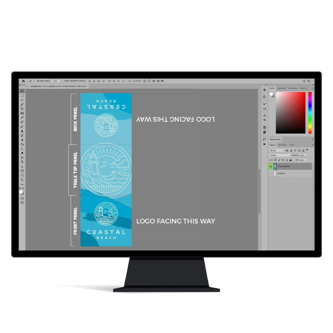 You do not need Adobe Photoshop, Illustrator, or any other Adobe program to format your table runner file! You can use any image editing or design software, as long as it allows you to export in CMYK.